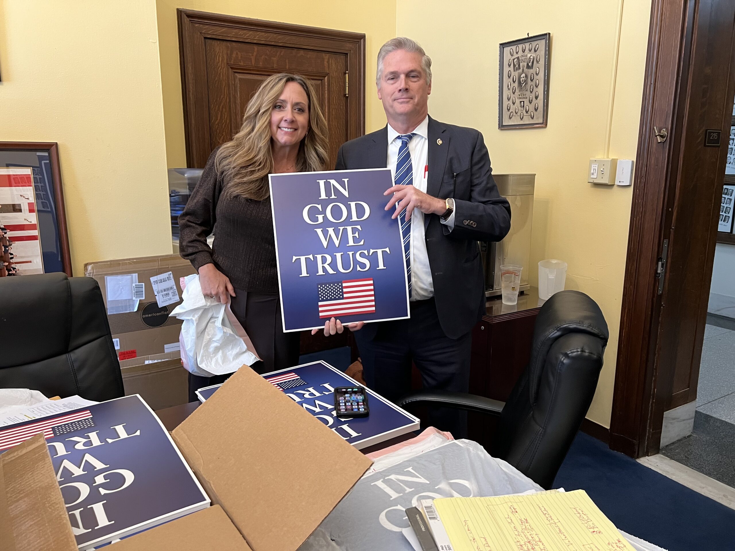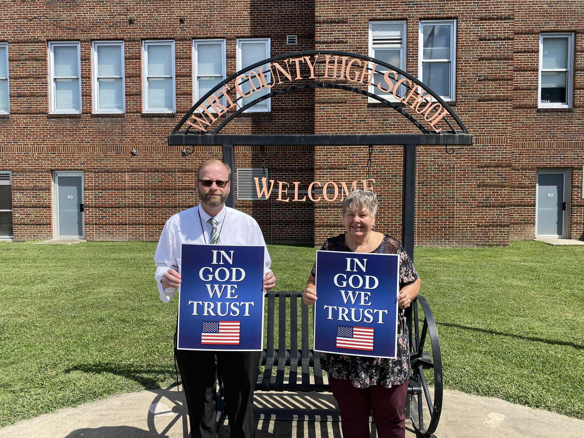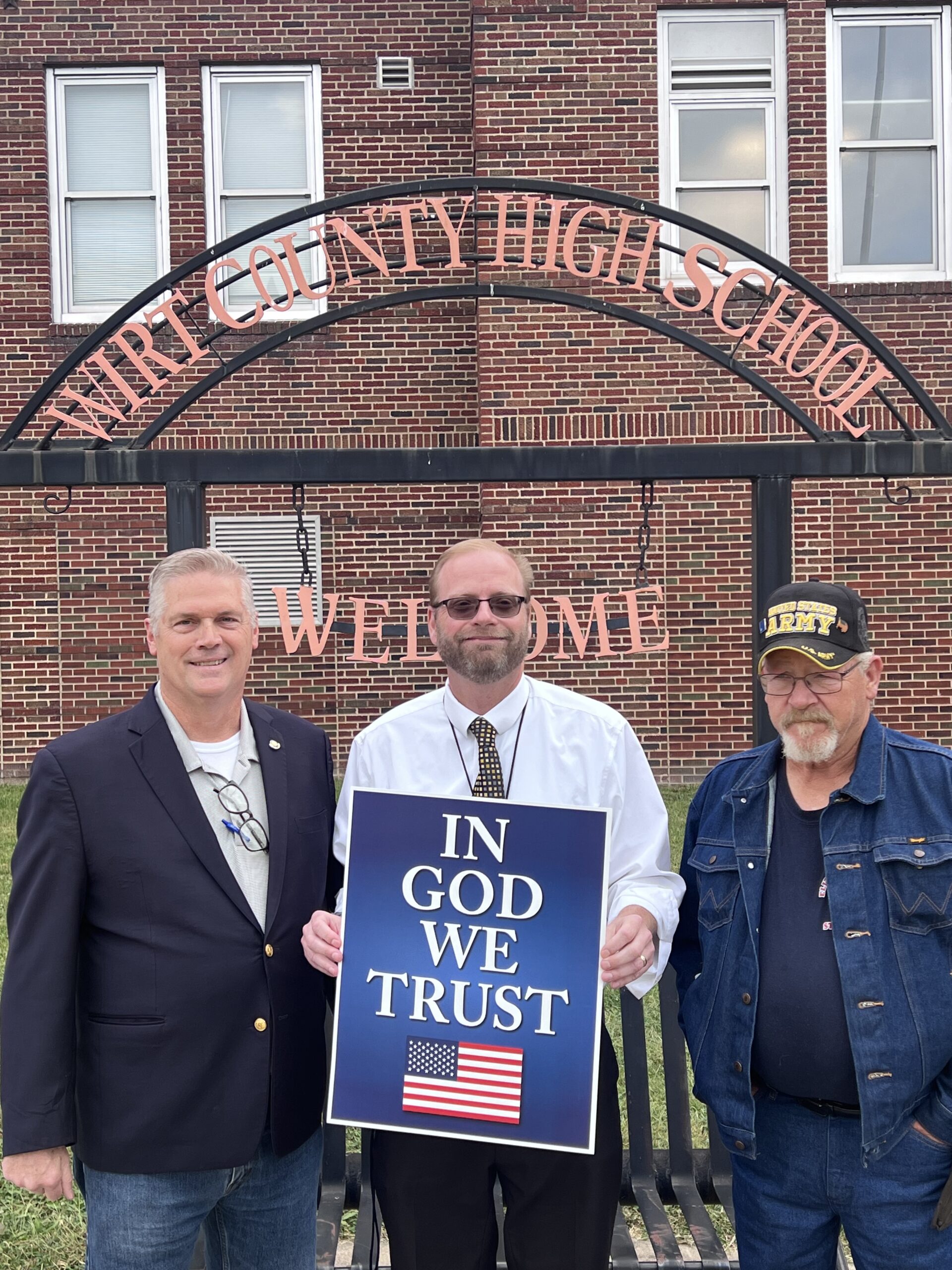 On Monday, September 8th a press conference was held at the state capitol where over 2,000 displays were handed out to volunteers in attendance. Every county in the state received enough displays to put at least one 16X20 National Motto poster in a common area on every public school campus. The governor, Patrick Morrisey, even spoke at the press conference and joined with other lawmakers in support of the bill and encourage citizens to respect religious freedom in West Virginia.