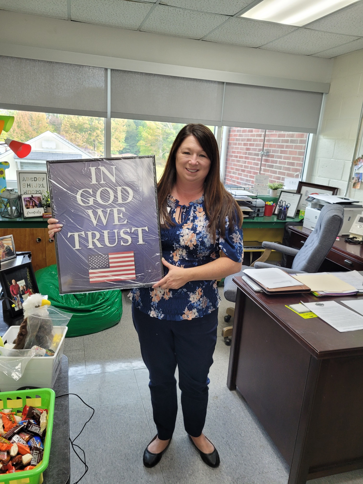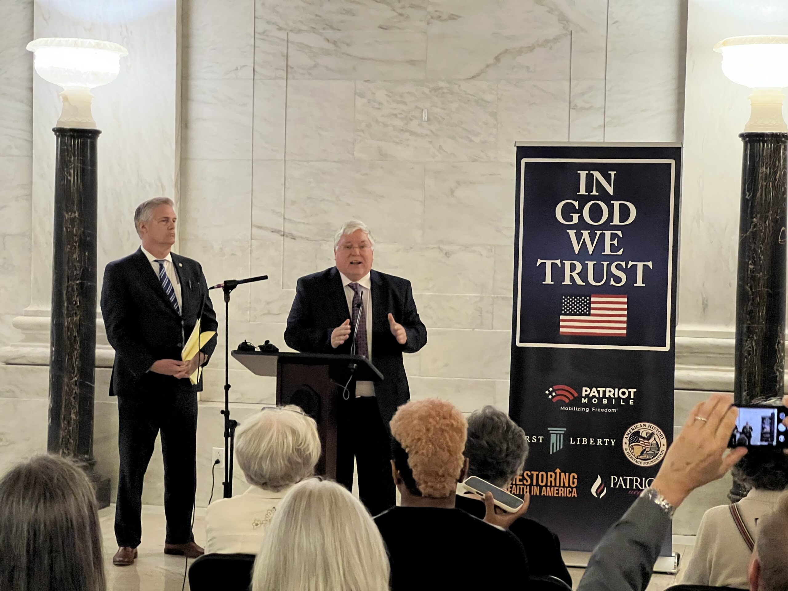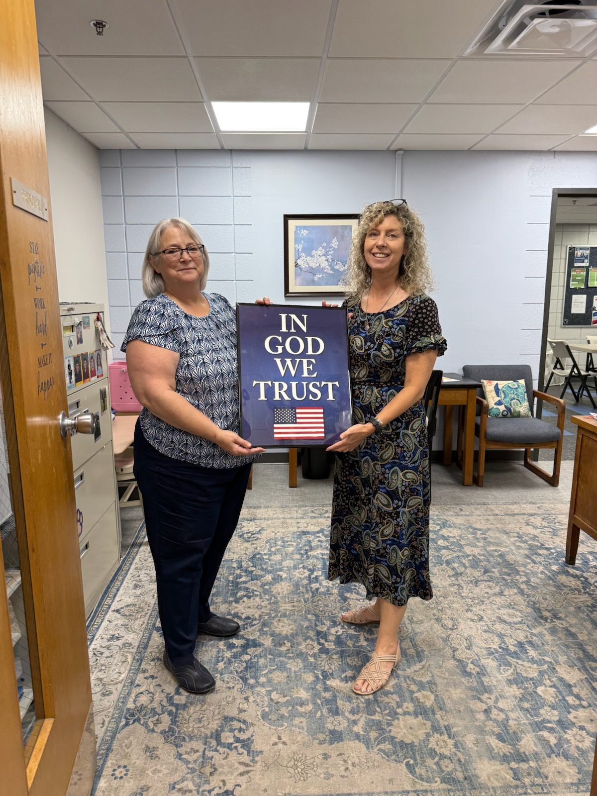 On Monday, September 8th a press conference was held at the state capitol where over 2,000 displays were handed out to volunteers in attendance. Every county in the state received enough displays to put at least one National Motto poster in a common area on every public school campus.